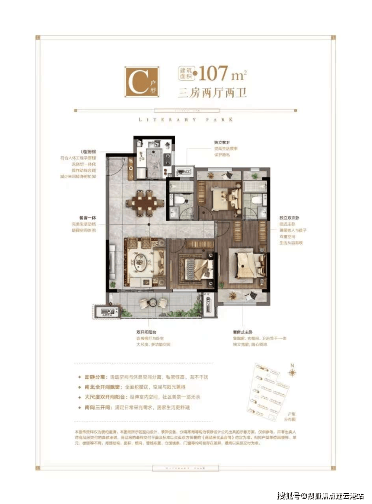 96-107㎡三室两厅两卫:总价120-134万/套,部分带装修