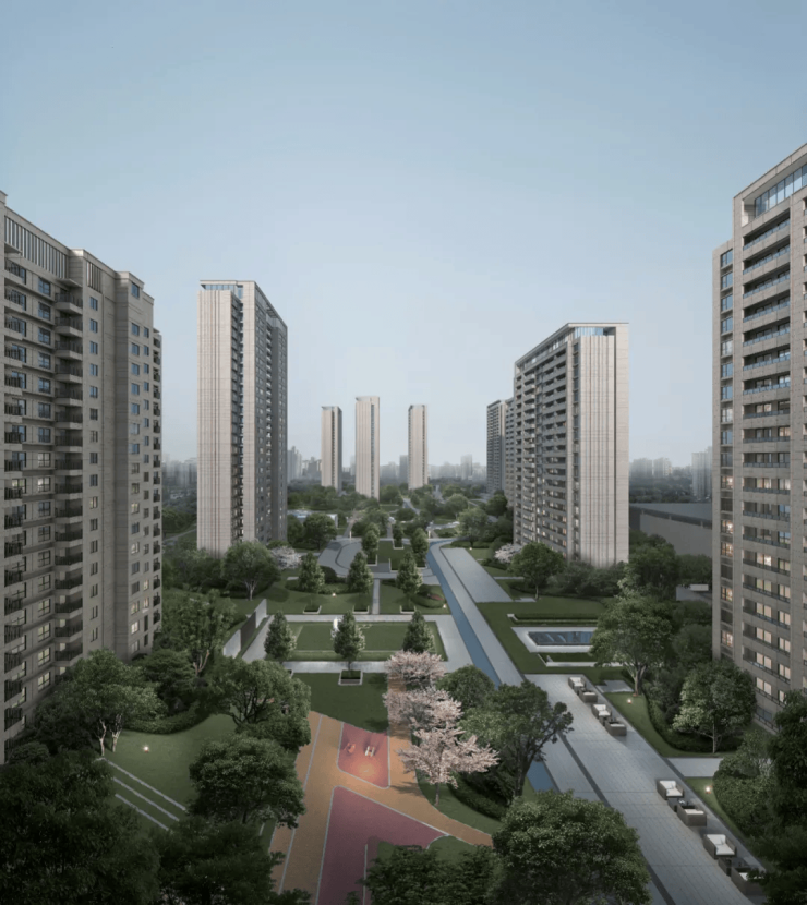 生态社区:项目容积率仅 2.2,绿化率高达51%,在高层住宅中极为罕见。社区采用围合式布局,内部打造了“一环、两轴、两园、三苑”的景观体系,并拥有私属滨水樱花泾,居住舒适度媲美低密洋房。