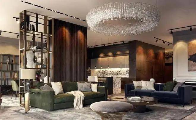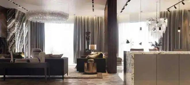 浅色的地板和天花板与许多温暖的天然木料形成对比,从而营造出和谐而完整的房间。奢侈品Boco do Lobo吊灯和茶几,在黄铜搁板的侧面,“ Minotti”的棕色沙发。在设计师眼里,没有人为的限制,没有标准的解决方案和过时的规范,空间衔接处也是简而有韵,有神有型。