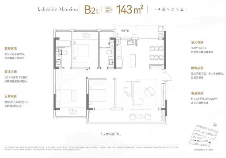 还有一个B2户型,也是4房,格局却大不相同。