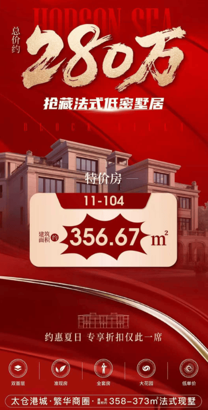 户型:主力为建面约140-180㎡叠墅,总价约300万起;另有建面约200-300㎡合院,总价约500万起。