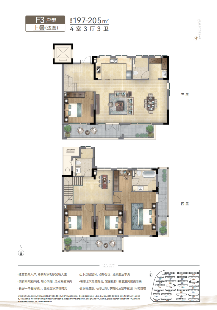中式叠院(上叠) 100–200 275–637 双露台+阁楼,视野开阔,空间延展性强 年轻家庭、度假需求