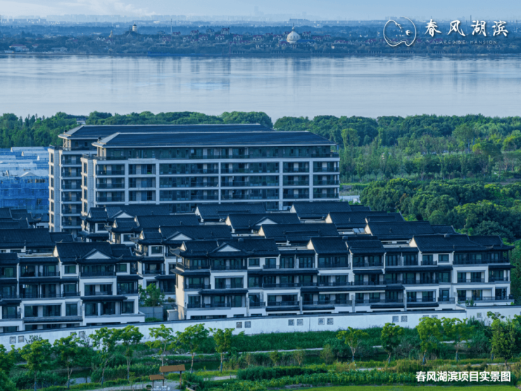 蓝城春风湖滨,坐落于苏州汾湖高新区,距离上海青浦边界仅约800米,是长三角一体化示范区先行启动区的核心项目。项目以“科创+康养”为定位,由绿城中国、蓝城集团与汾湖投资三大品牌联袂打造,总占地约202亩,容积率低至1.07–1.2,绿化率35%,规划总户数807户,涵盖中式叠院(100–230㎡)与新亚洲洋房(90–161㎡),均为精装交付,标配中央空调、新风系统、地暖,总价200万起,是上海西岸罕见的低密湖居别墅盘。