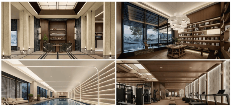 约1500㎡的会馆内部堪称“美学与实用的结合体”,地面与墙面采用进口奢石铺设,纹理自然且质感细腻;墙面点缀非遗苏绣元素,传递苏州本土文化;会馆内配备健身房(含跑步机、哑铃等专业器械)、恒温泳池(水温常年保持在26-28℃)、私宴厅(可容纳20人以上聚餐,配备专业厨房与餐具),既是业主的专属社交场,也是龙湖对高端生活方式的全新诠释。