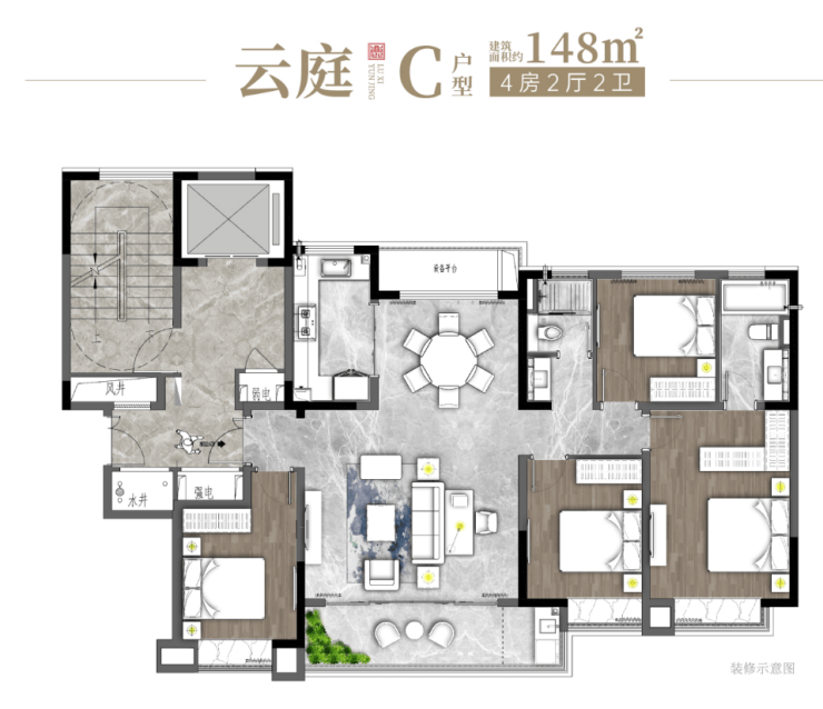 主力户型为建面约138-186㎡的4居室,具体如下: