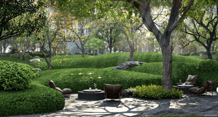 绿化率 30%,园林以“桃源十二景”为主题,复刻寄畅园意境,由吴冠中画作灵感打造