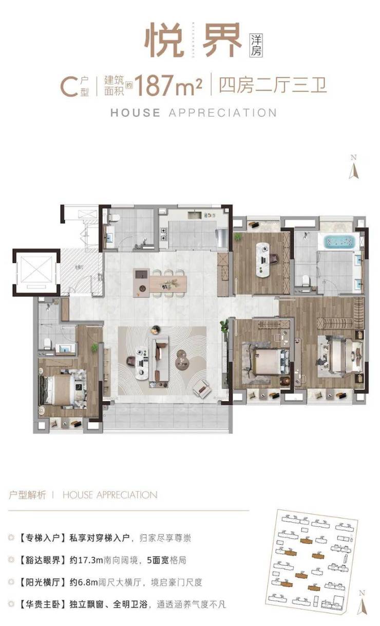 【户型区间】建面约143-187㎡(143/167/169/187㎡)