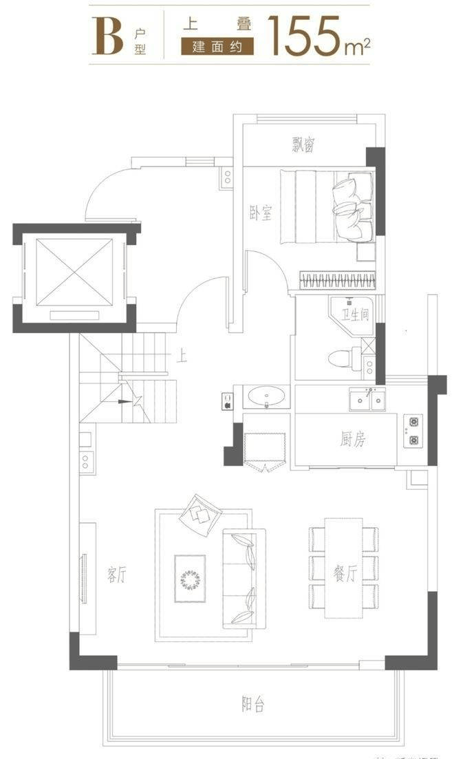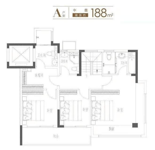 法式叠墅:建面约155-175㎡,总价约380-480万(均价24000-25000元/㎡)