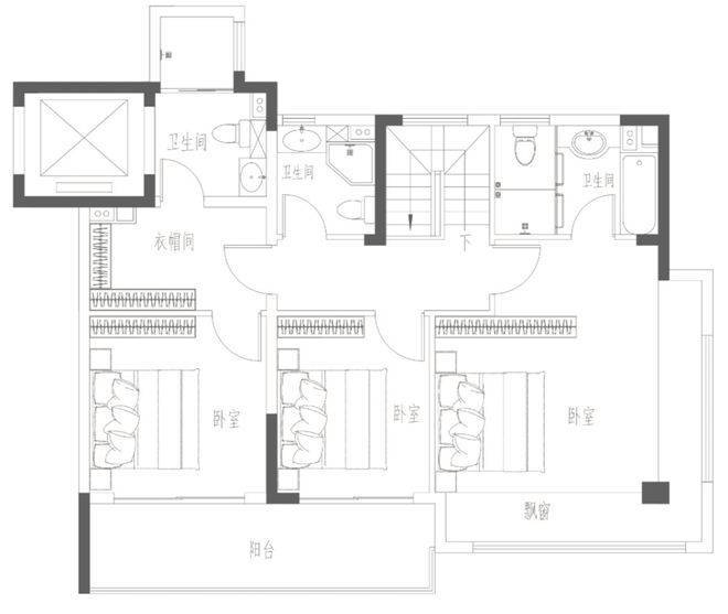 洋房:三开间朝南,约6.3米面宽阔绰双阳台,进深约1.8米