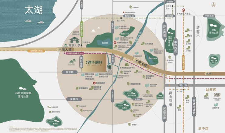 板块能级:所在太湖科学城板块与苏州工业园区并级,是苏州“一核多区”规划中的核心增长极,汇聚了南大苏州校区、中科院医工所等顶级资源,发展潜力巨大。400 998 3632美田锦华澜轩营销中心电话