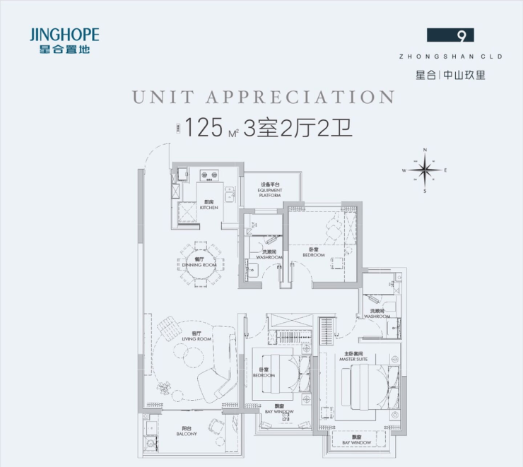 得房率 84%–86%,高于市场平均水平,125㎡户型实得面积超105㎡