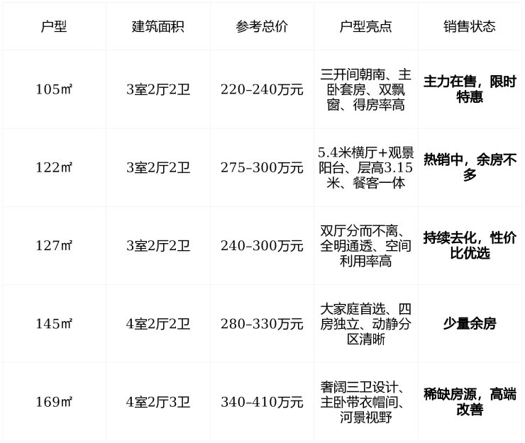 💡 购房提示 :105㎡户型为当前性价比最高选择,总价220万起可享双卫+全明格局,适合年轻家庭或首次置业者。