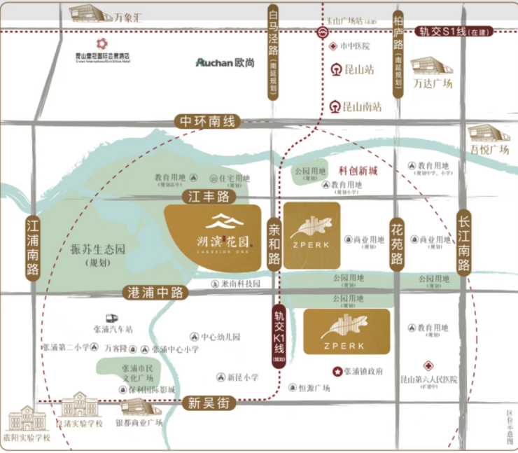规划中昆山K1线(地铁11号线延伸段)将从项目东侧经过,未来在玉山广场站换乘苏州S1线,直连上海地铁11号线,实现“沪苏昆三城联动”