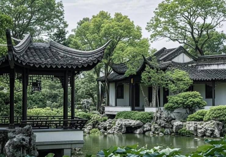 纯正苏式园林风格:由香山帮传人全手工打造,融入太湖石、砖雕、廊亭水榭等非遗技艺,复刻拙政园"抱拙八景"