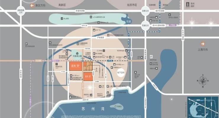 特色商业:地下30万方“苏州湾橙天里”综合商业体(地标级),项目自建6800㎡邻里中心(含社区服务及儿童医院)