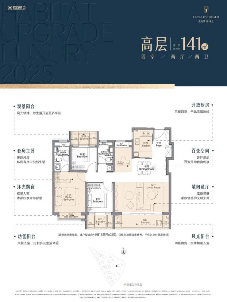 开发商招商蛇口隶属于百年招商局集团, 拥有深厚的历史底蕴和强大的品牌影响力。招商臻境是继"玺"系、"璀璨"产品系之后的重磅力作, 致力于匹配都市新贵的内在需求,重新定义改善生活的奢享标准。