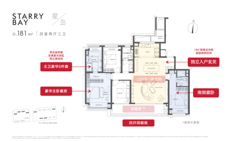 出乎意料!仁恒滨湖湾约156㎡的户型,做到了双套房,三卫生间配置。功能性拉满了~