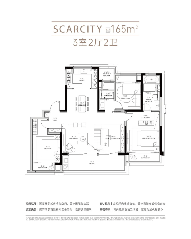 165㎡ 3室2厅2卫 590 – 680 35,800 – 41,200 横厅设计,主卧套房+独立衣帽间,适合三代同堂