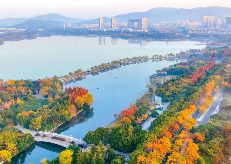 环蠡湖21公里湖岸荟萃了鼋头渚、渤公岛生态园、渔父岛生态园、蠡园、十八湾等5A级景区、4A级景区,15个开放式公园布局其中,仿若珍珠缤纷点缀在蠡湖之上。