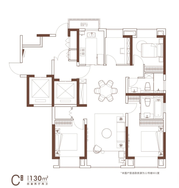 129–130㎡ 9,500 – 10,800 122万 – 140万 主力户型,四室两厅,南北通透,市场成交主力