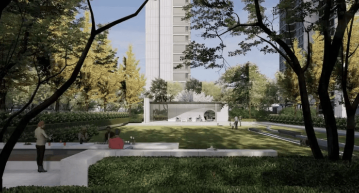 社区内景:超14,000㎡中央双园,相当于2个标准足球场,采用“一环两轴五境八景”景观体系,设童梦王国、阳光派对、冥思广场、活力剧场等全龄活动空间