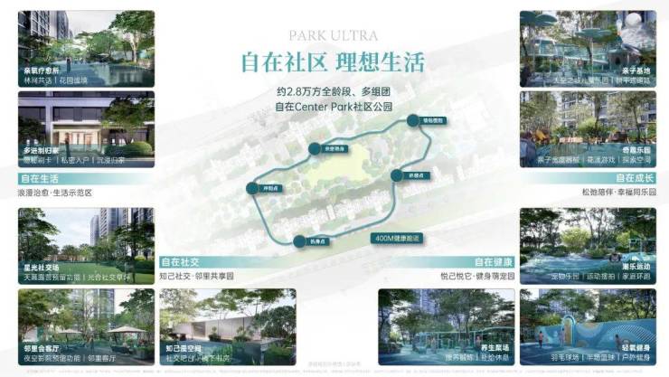 社区景观以“自然、自在、自由“的Center Park城市公园理念,规划约2.8万方全龄段、多组团社区公园谧境,围合布局约1.3万方park ultra中央公园,以自在健康、自在生活、自在社交、自在成长4大功能组团,打造全龄、全功能、全家庭体验的理想生活场域。☎️VIPline:4009983632【售楼热线】☎️