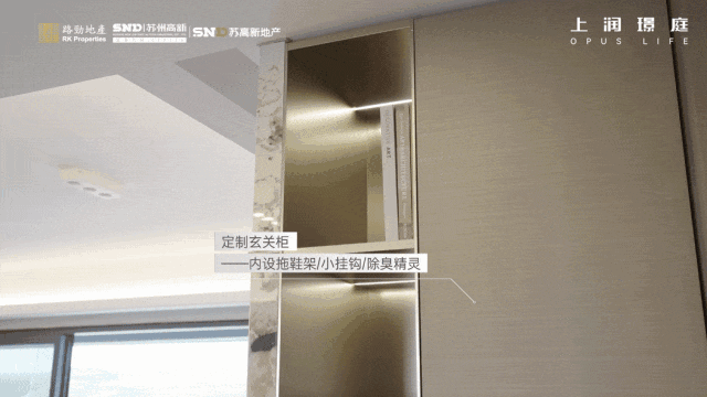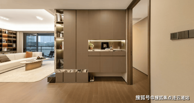 比如,从入户玄关、定制台盆+镜柜,到餐边柜、厨房储物拉篮等,全屋都增加了大量收纳空间,满足各类需求;