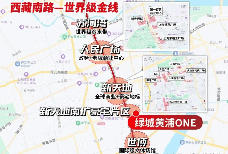 再往南则是加速建设的新天地南扩高端住宅区,最终延伸至世博板块,未来将成为高净值人群聚居的新热点;