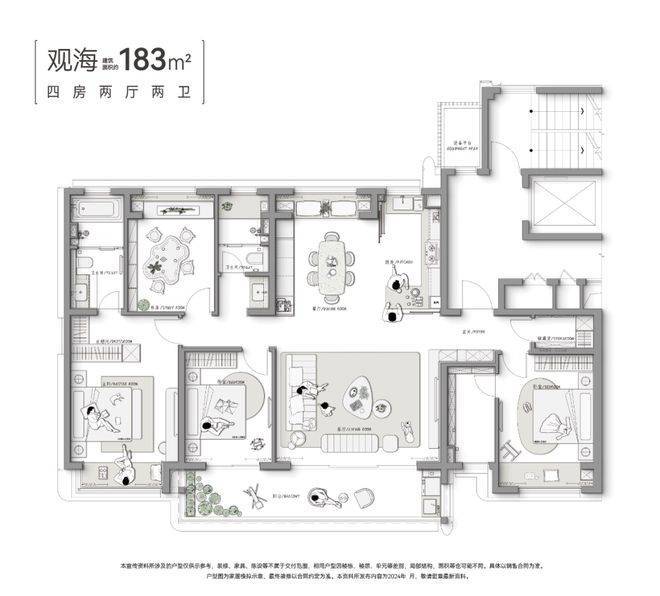 183㎡:4房2厅3卫,主卧套房+双主卧朝南