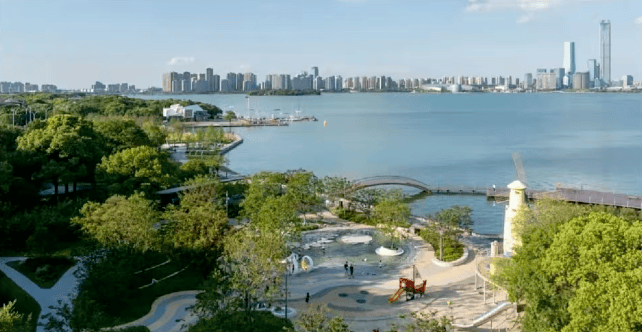 “一园双河”超级底盘:项目南侧代建12,000㎡滨水公园,沿河设慢行步道、亲水平台、林荫座椅