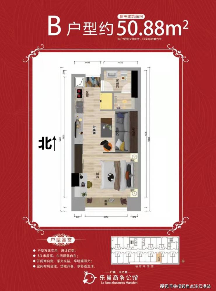 【在售面积】50㎡56㎡64㎡(一室一厅一卫)