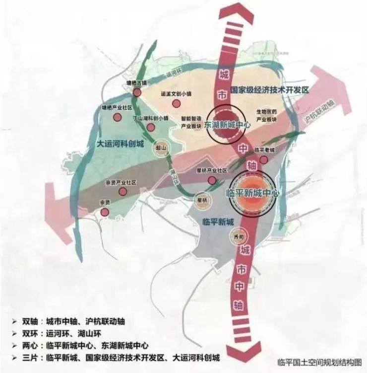 拓展的两头,南边是以高铁站为锚点的临平新城,北边就是东湖新城,一老二新,在一条发展的纵轴上,与城市群的沪杭联动轴形成完美十字交叉,完全就是东边的“云城”。