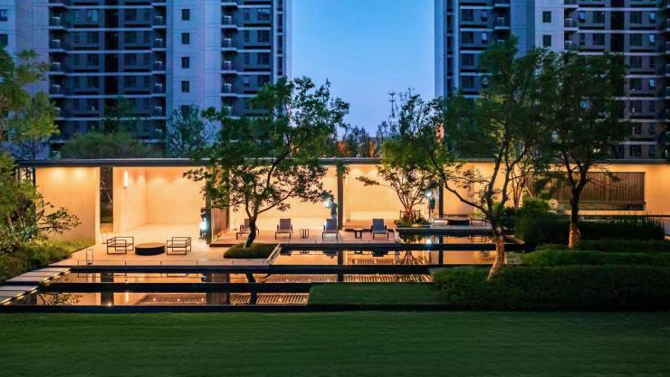 景观设计:以“无界社区”理念打造“一心两轴十景”,配备约500㎡阳光草坪及全域架空层(层高3.6米),划分社交、活力、童享等主题空间。