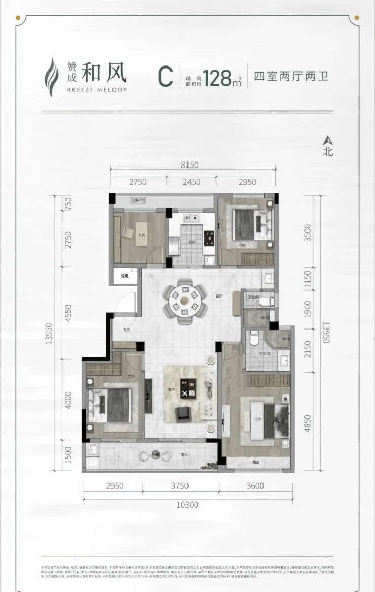 在售户型涵盖建面约 105㎡、110㎡、115㎡、128㎡、135㎡、137㎡ 的三至四房产品,满足刚需及改善型家庭需求: