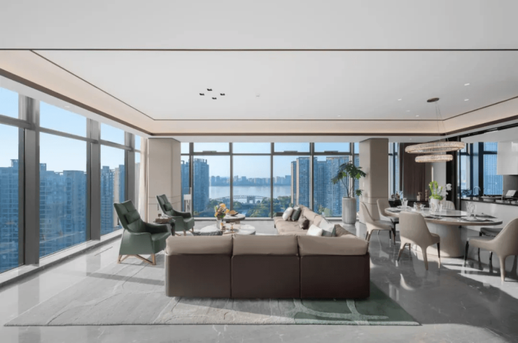 主力户型:约360–1080㎡墅境大平层,层高约3.3–3.6米,得房率超80%