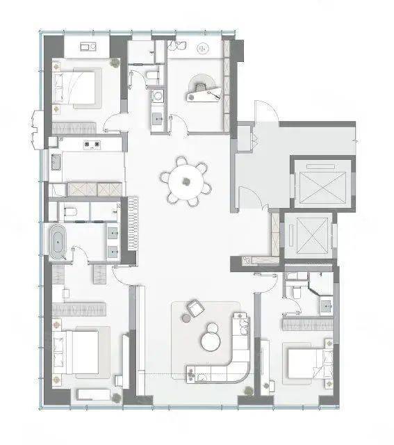 大平层:190㎡(四房两厅三卫)、220㎡(四房两厅三卫)、249㎡(四房两厅三卫)