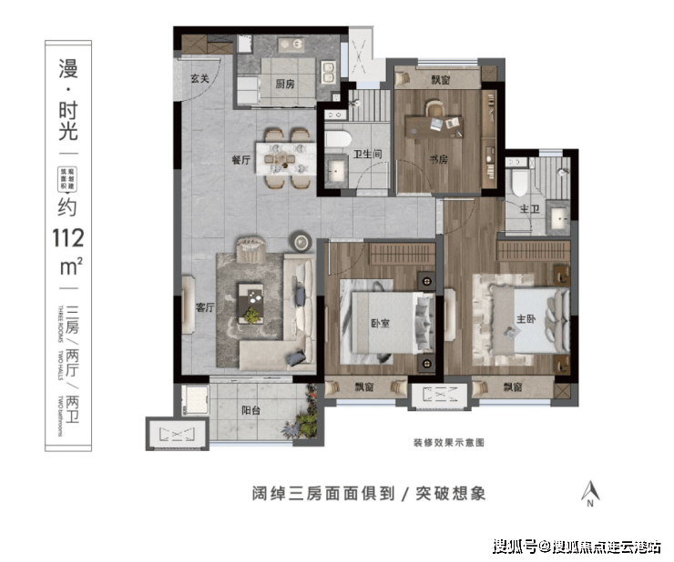 主力户型:89-112㎡三房,均价8300-8600元/㎡,总价75-95万/套,得房率75%