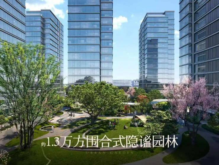 整个园区以围合式布局展开,七幢建筑借鉴中国古典园林的精髓,最大楼间距达到了63米,使得每栋楼都能享受到270°的开阔视野,仿佛是一座座隐匿于花园中的岛屿。为了与景观相呼应,园区立面采用“水晶天幕”设计,线条纤细,使建筑宛如天空中垂下的纯净湖面。
