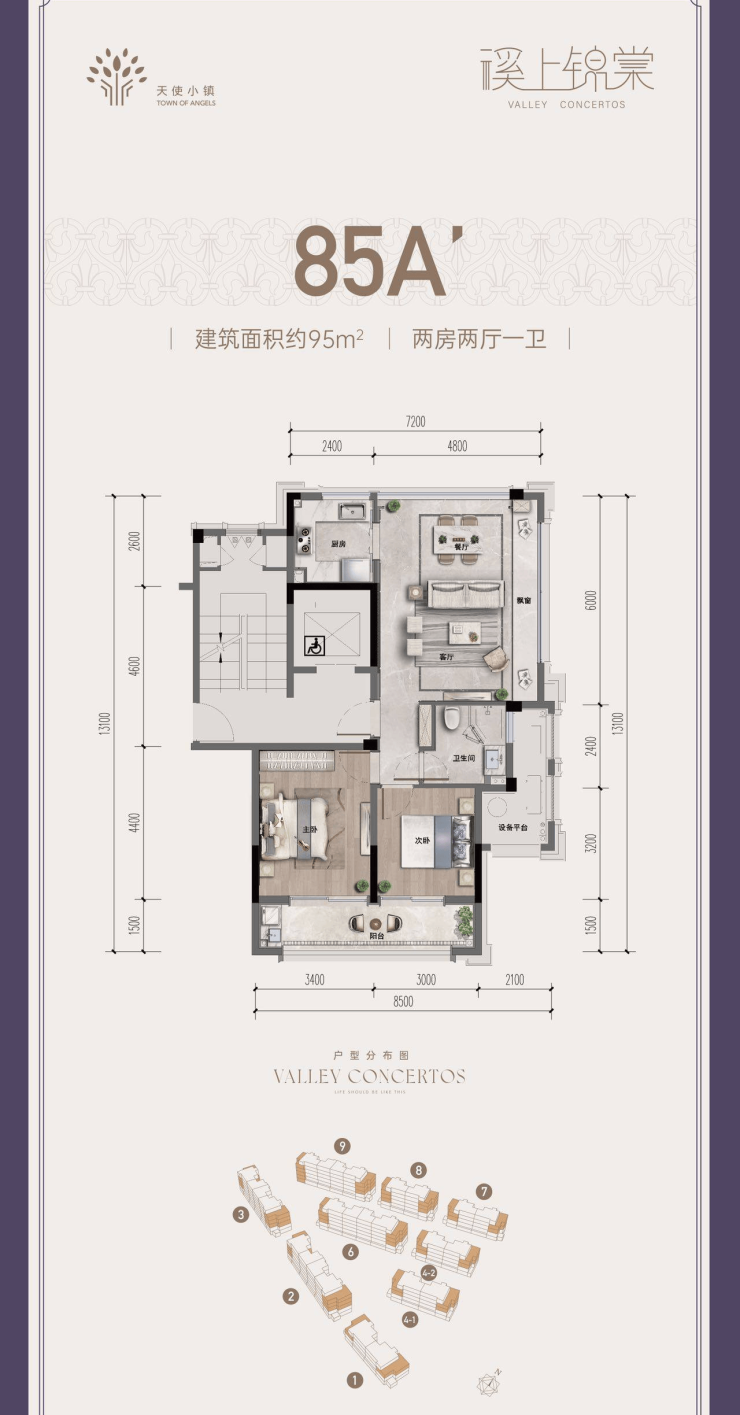 85㎡两房两厅一卫:适合年轻家庭或投资客群,客厅带阳台,明厨设计