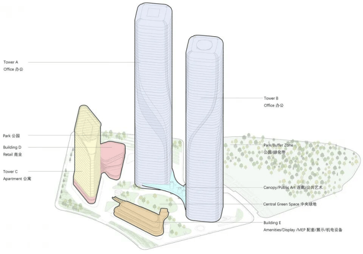 智慧生态:建筑群围绕中央绿地布局,实现“低密度、高绿化、微气候调节”,获WELL认证的室内空气质量标准,PM2.5常年≤15μg/m³。