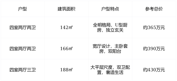 价格参考 :备案均价 27800元/㎡ ,部分房源因楼层、朝向略有浮动,总价区间 365–430万元 。
