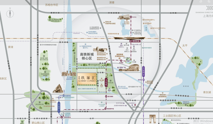 高铁枢纽 :紧邻 苏州北站 ,随着扩容工程推进,将成为长三角超级枢纽,通勤上海、南京高效便捷