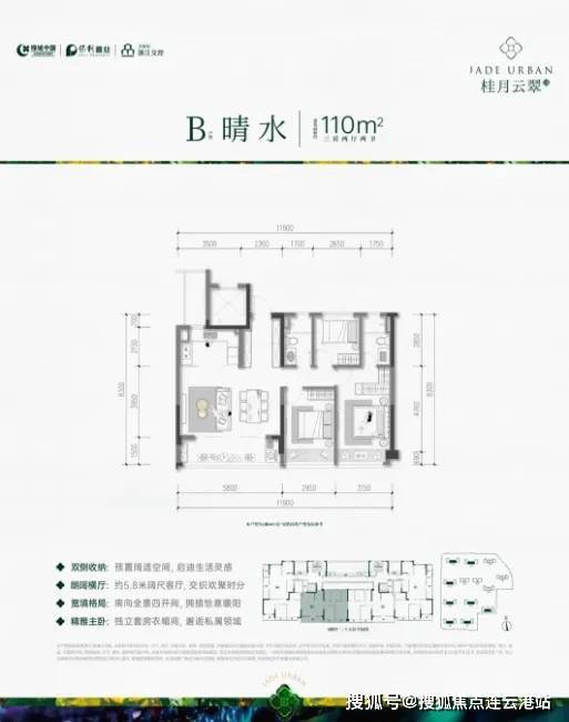 ❖ B户型晴水-建面约110㎡-3房2厅2卫