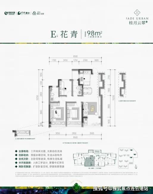 ❖ E户型花青-建面约98㎡-3房2厅2卫