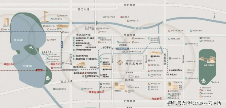最便捷的交通:3条地铁(约400米轨交6号线、1号线、17号线)、3条高铁线路(通苏嘉甬铁路、苏锡常城际铁路、苏淀沪城际铁路)、2条城市主干道(甪直大道、东方大道)、1个高铁站(高铁苏州东站)