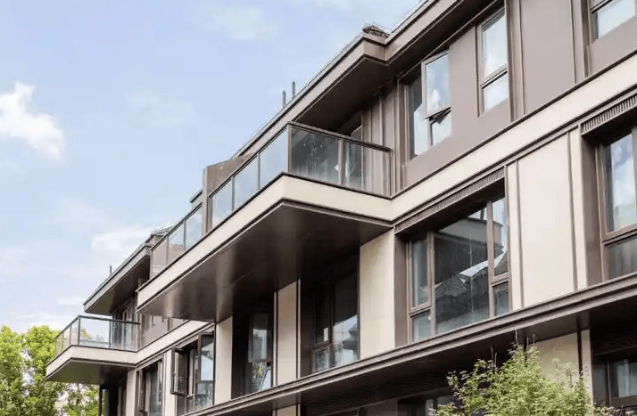 现代中式建筑风格 :外立面采用干挂石材+铝板线条,搭配灰色坡屋顶,兼具质感与江南韵味