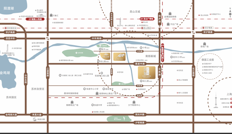 轨道交通:规划中的地铁K1线(连接苏州轨交11号线),距昆山南站直线约6.5公里