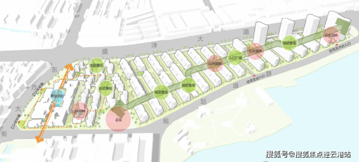 片区位置:盛泽大道与东方大街交汇地带,北依红梨湖(今桥北荡),南临西白漾,盛泽“一心两轴多片区”城市规划重要组成。