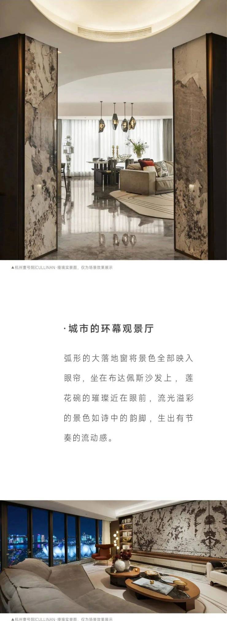 杭州壹号院最后的商业大户型“CULLINAN”,距莲花碗仅约400米,是离这个超级IP最近的硬核资产之一。首先是它无与伦比的站位,窗外就是大小莲花碗、杭州之门、大墨镜、钱塘江、日月同辉、来福士,仿佛每天都能和伟大的事物发生感应。