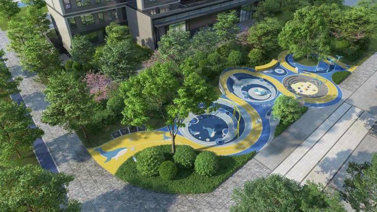 约5000㎡的复合全龄活动空间,将景观、空间、人三者紧密联系,融为一体。分龄段游乐空间,各有主题及意趣,玩乐设施不同,周围景观环境也各有差异,契合不同年龄段孩子对外界探索的好奇心。其间设置遮荫避阳的休憩设施,以及亲子共乐、天伦同欢的配套,让家长们陪伴、参与孩子的童年时光。